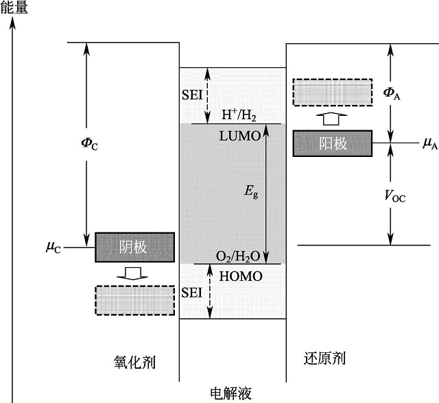 圖1-2 正負(fù)極材料與電解液體系相對能量圖