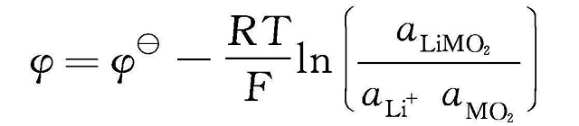 LiMO2為例,電極電位表達(dá)式如下。