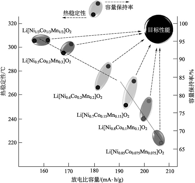 圖1-4 NMC系列三元材料的組成與性能比較