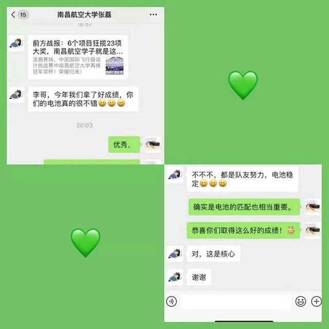 1. 哇哦~看了上面的聊天記錄,簡(jiǎn)直開(kāi)心到飛起,原來(lái)是使用了諾信電池,“隊(duì)友努力、電池穩(wěn)定、匹配度高”,這是核心!對(duì)此,諾信電子作為合作伙伴,向你們表示祝賀,瘋狂為你們打call!